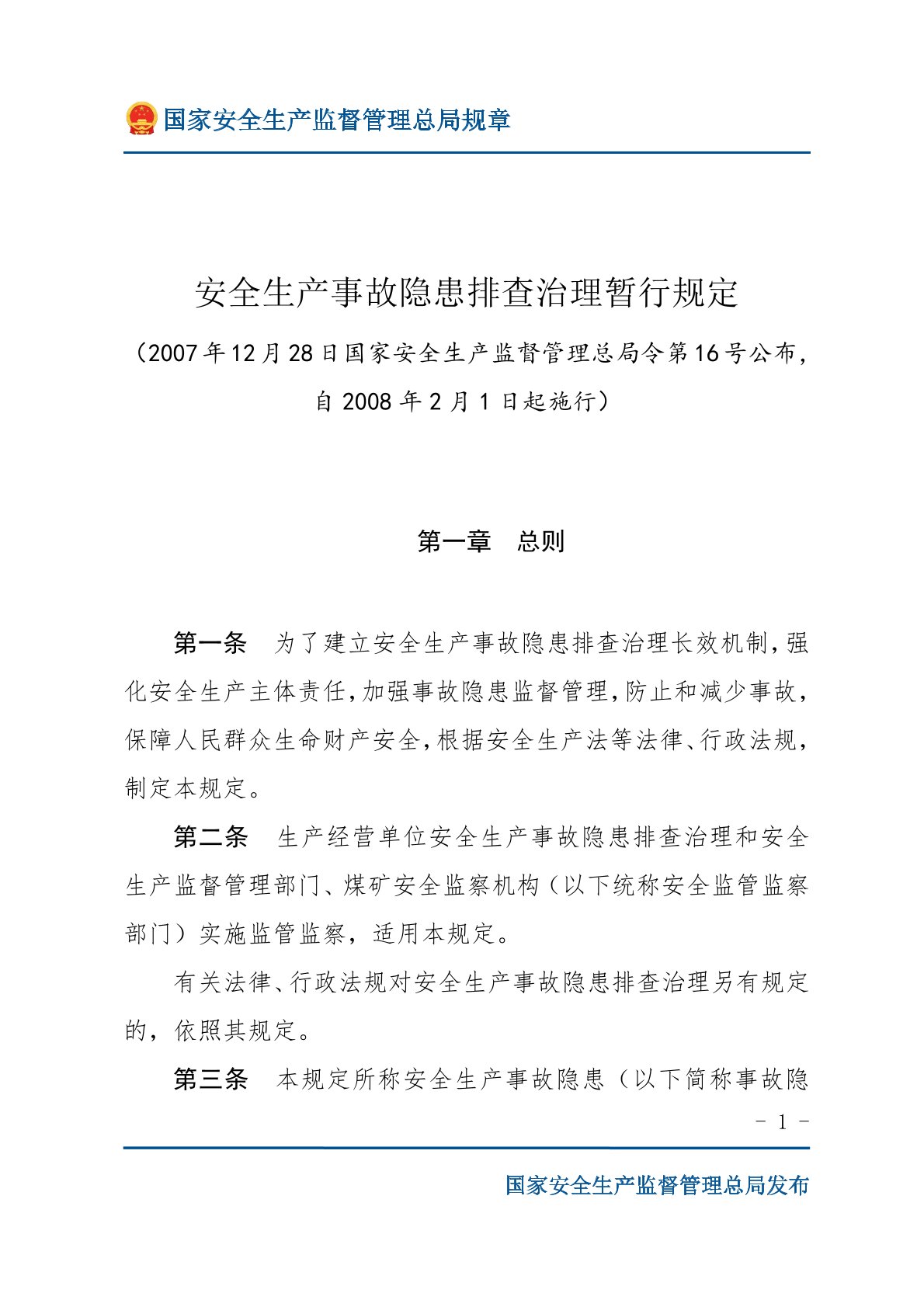 安全生產(chǎn)事故隱患排查治理暫行規(guī)定